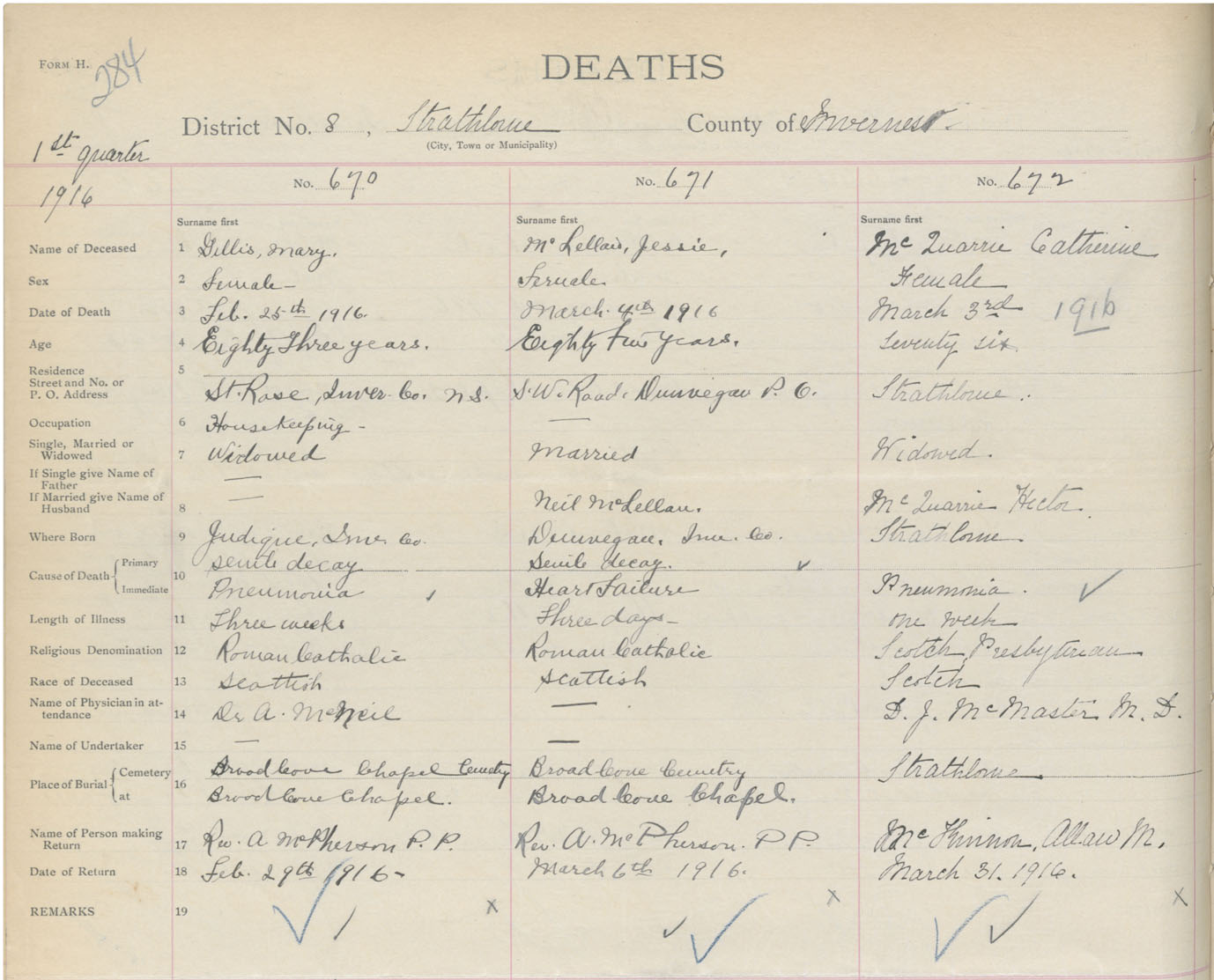 Death Registration: Year: 1916 book: 37 page: 284 number: 670