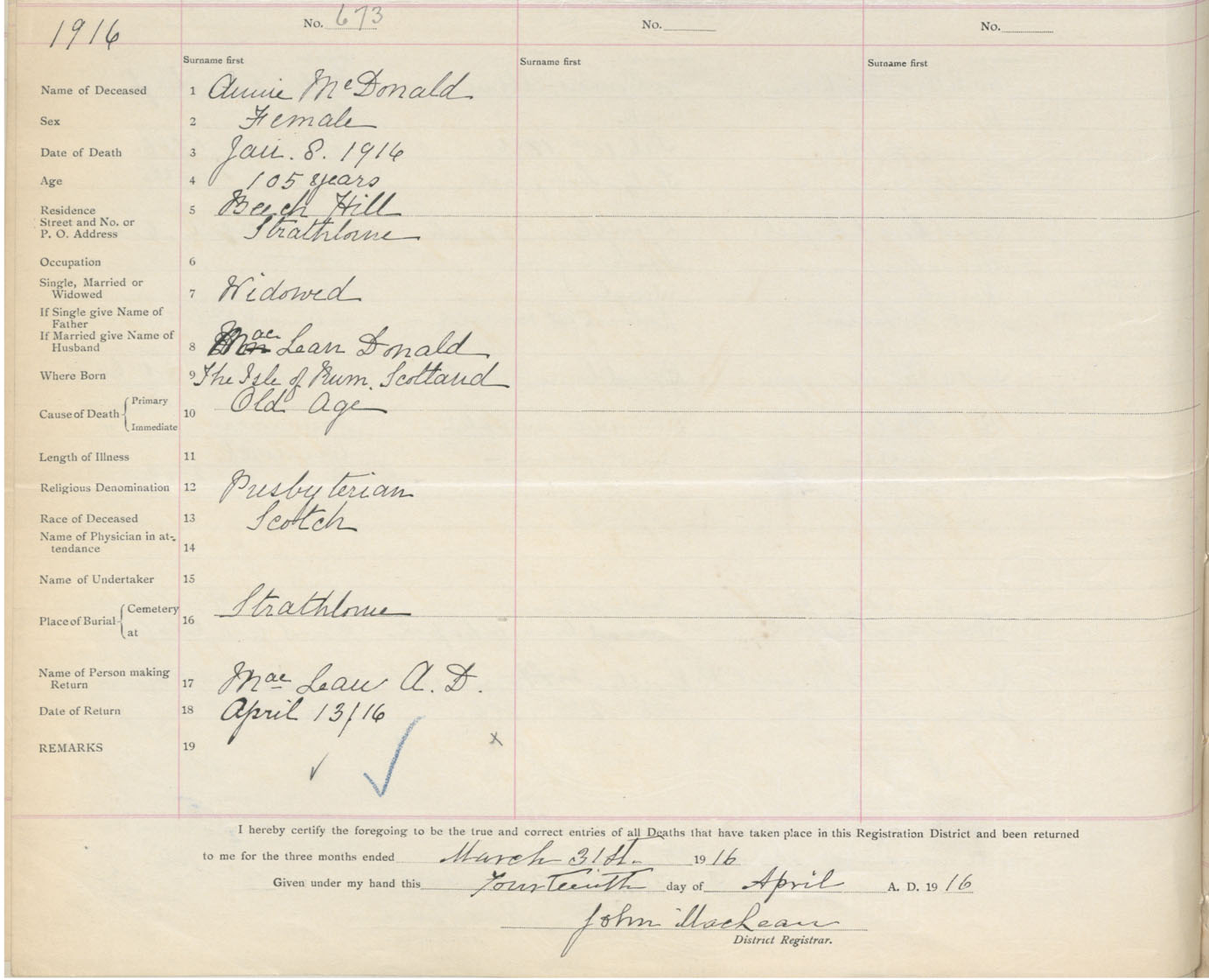 Death Registration: Year: 1916 book: 37 page: 284 number: 673