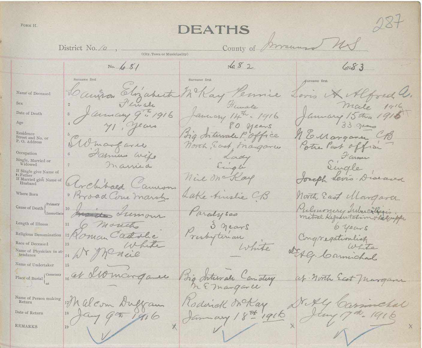 Death Registration: Year: 1916 book: 37 page: 287 number: 681