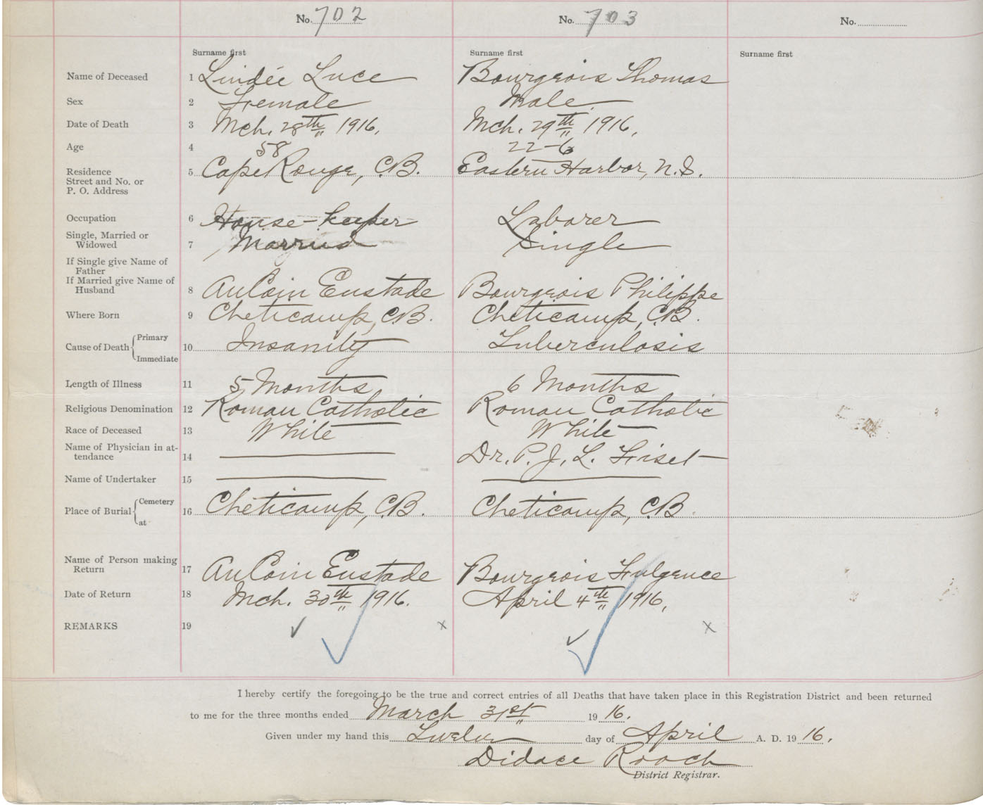 Death Registration: Year: 1916 book: 37 page: 290 number: 702