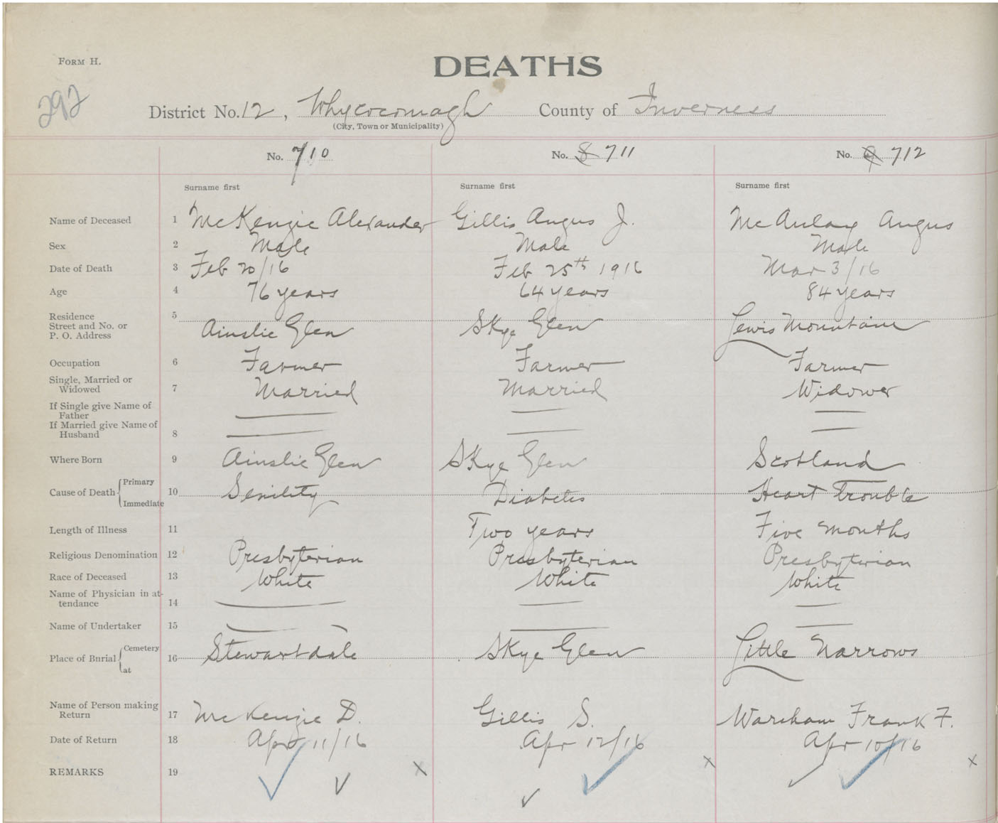 Death Registration: Year: 1916 book: 37 page: 292 number: 710
