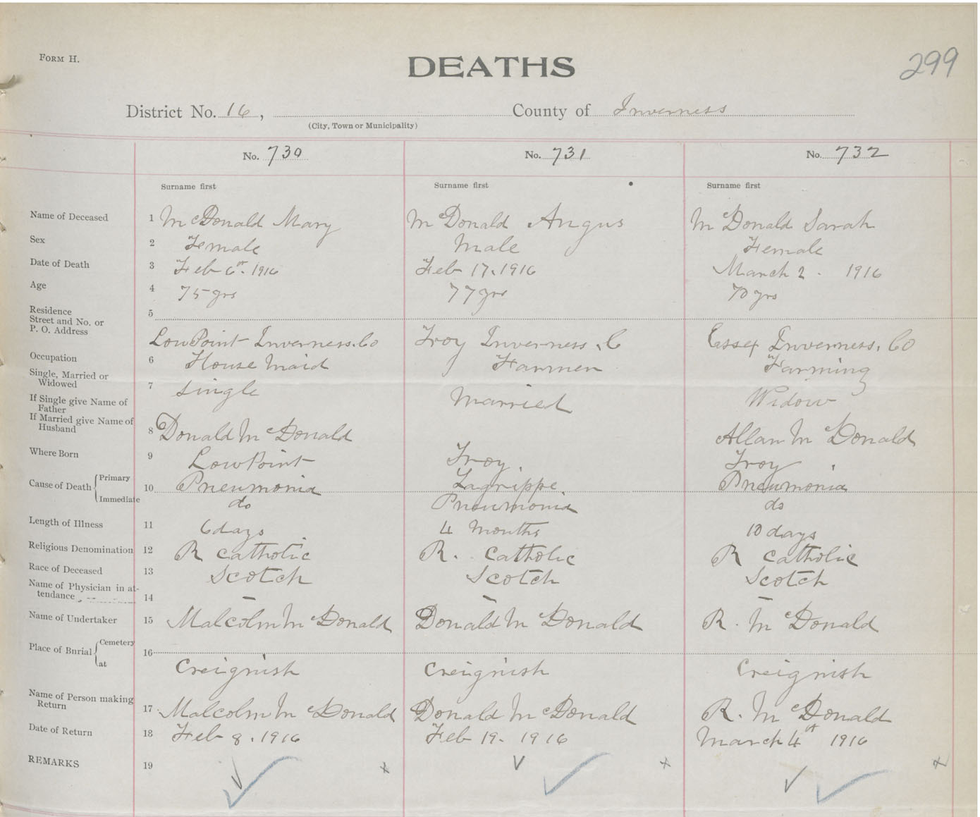 Death Registration: Year: 1916 book: 37 page: 299 number: 730