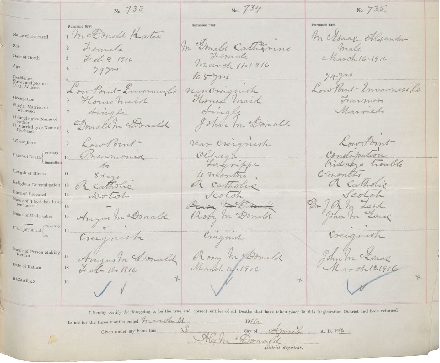 Death Registration: Year: 1916 book: 37 page: 299 number: 733