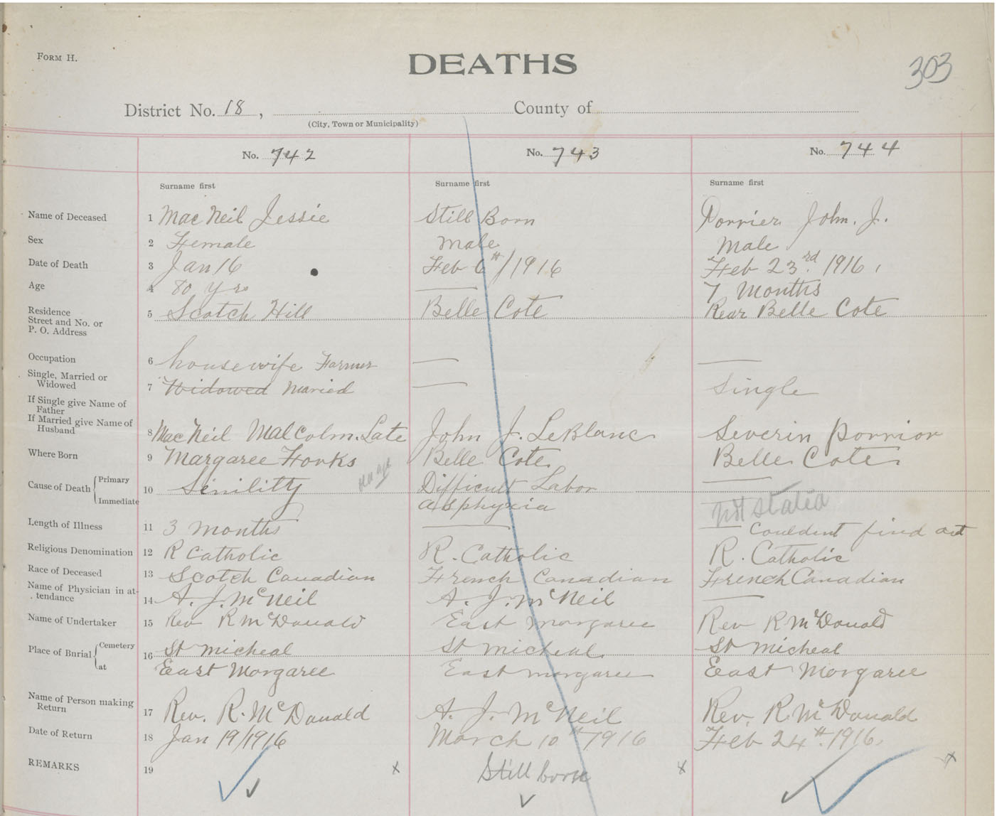 Death Registration: Year: 1916 book: 37 page: 303 number: 744