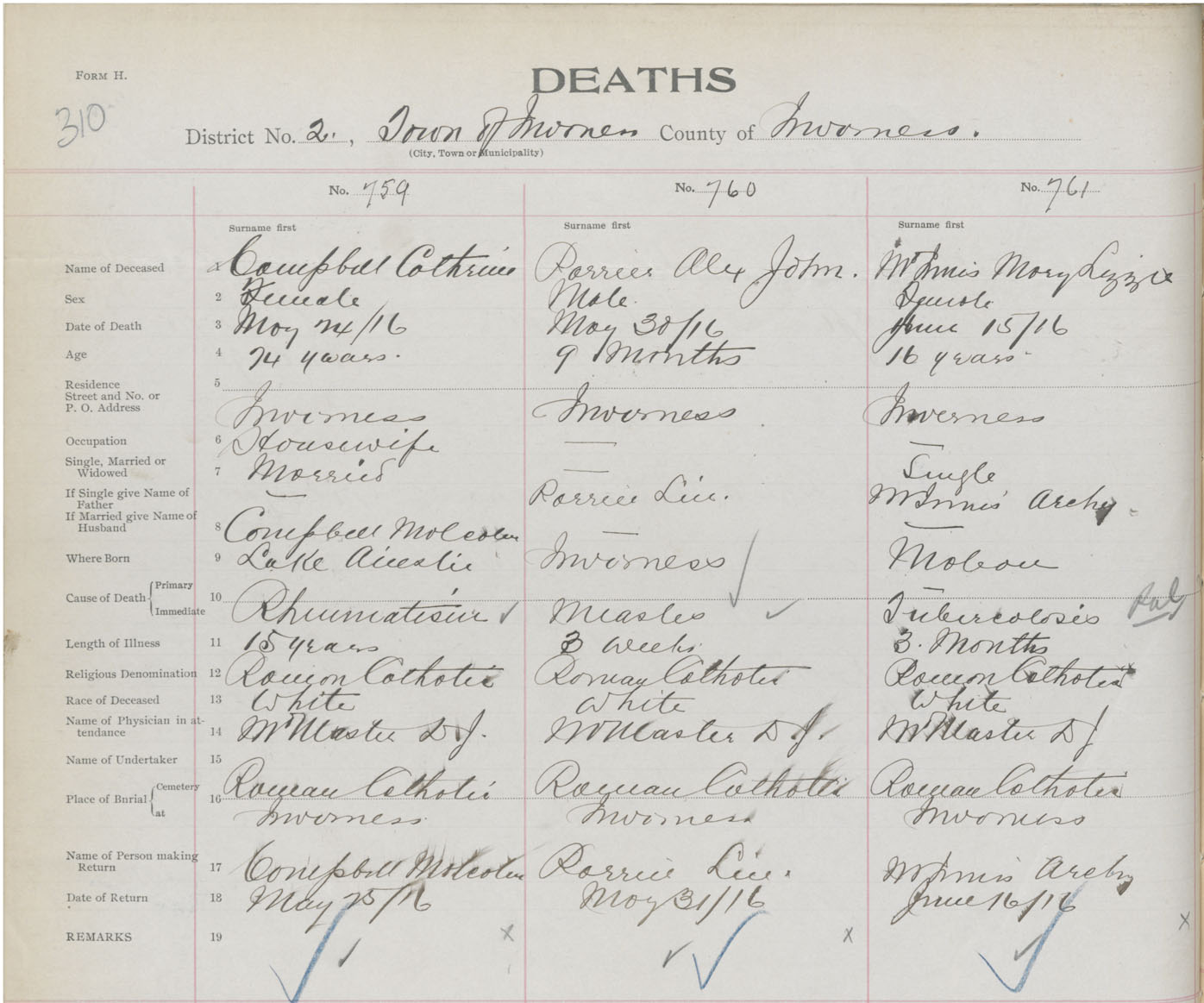 Death Registration: Year: 1916 book: 37 page: 310 number: 761