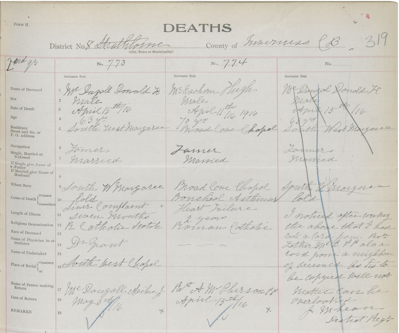 Death Registration: Year: 1916 book: 37 page: 319 number: 774