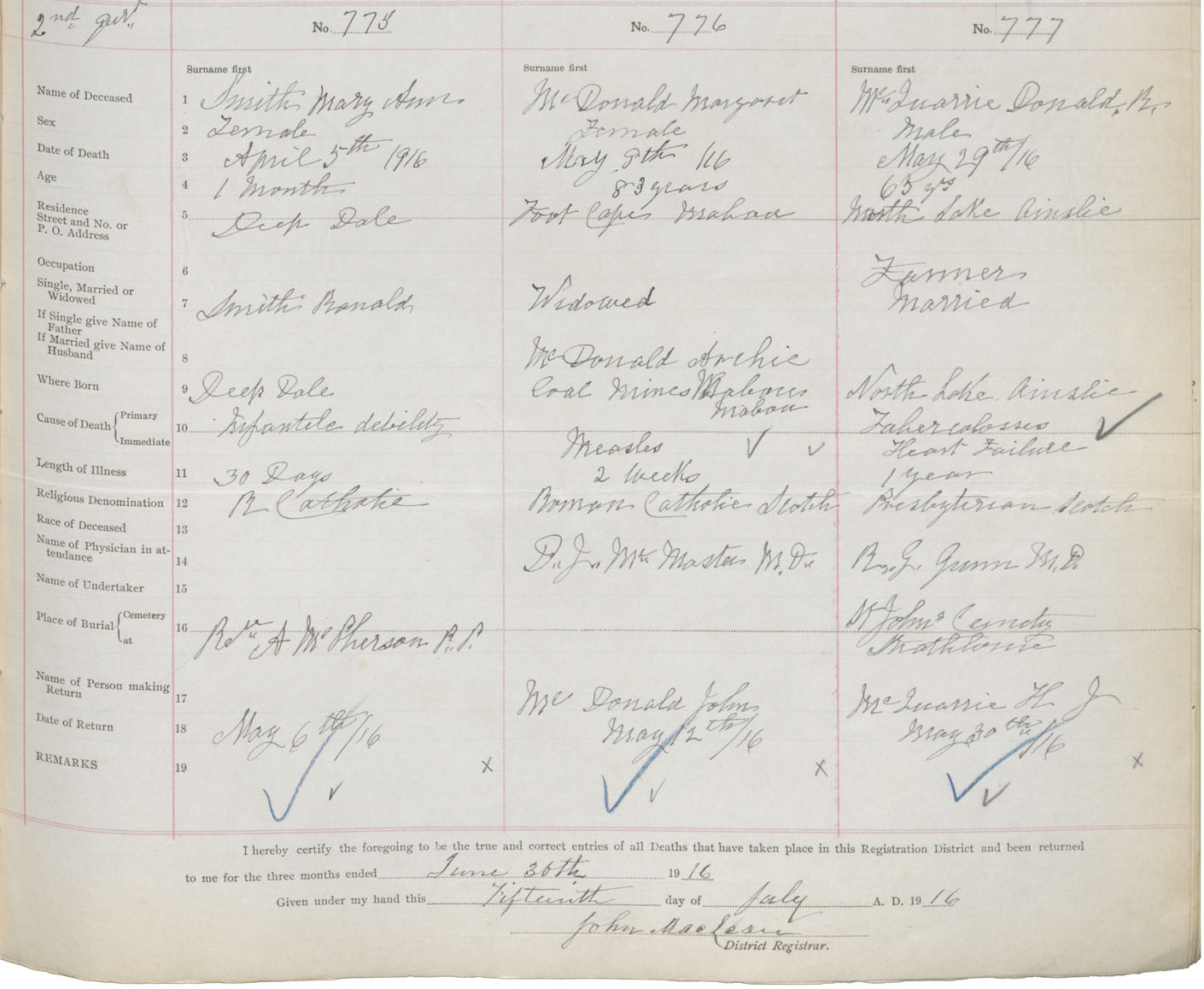 Death Registration: Year: 1916 book: 37 page: 319 number: 777