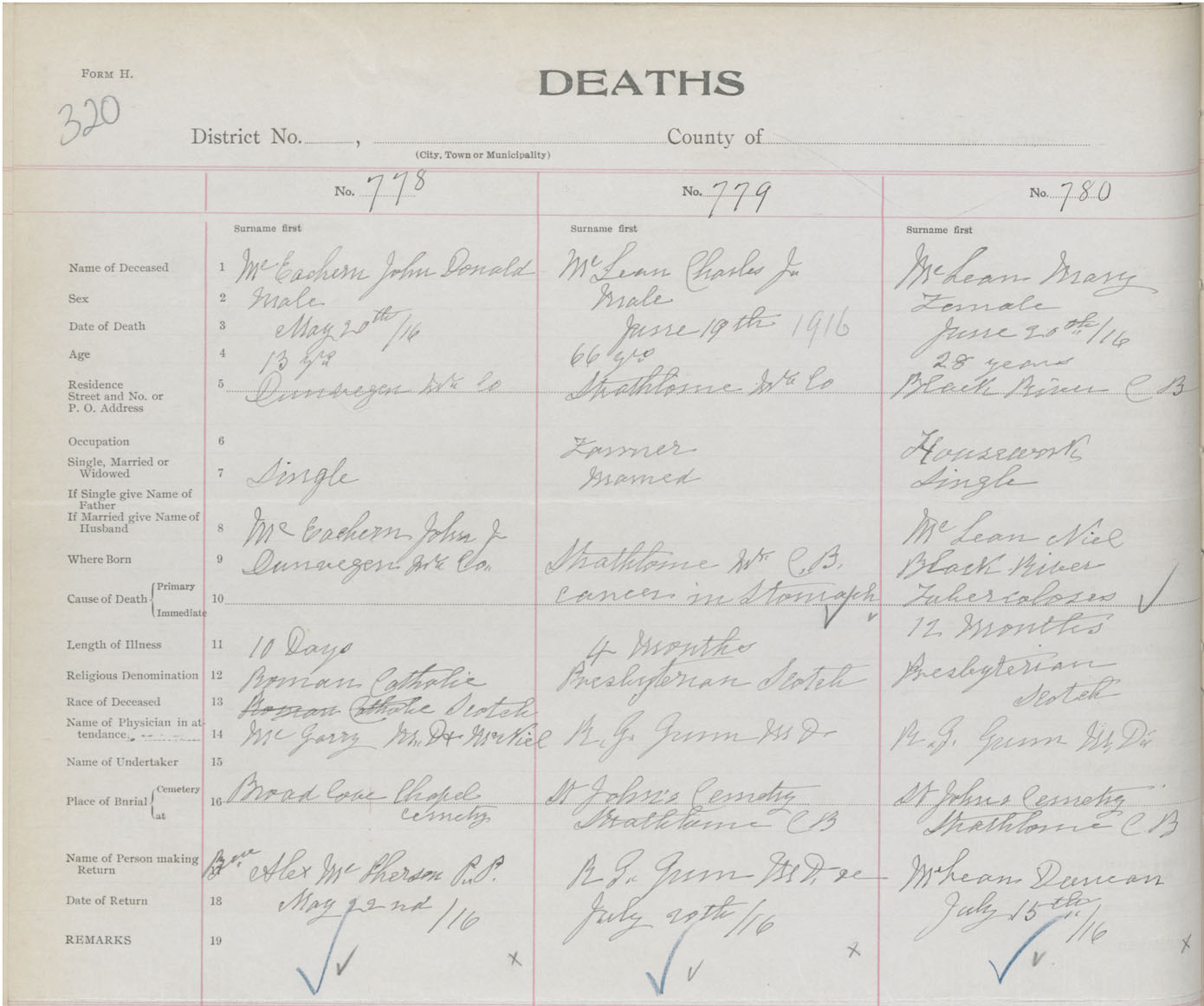 Death Registration: Year: 1916 book: 37 page: 320 number: 780