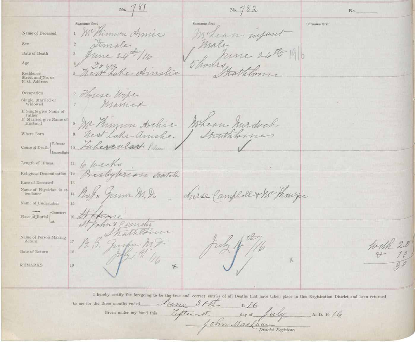 Death Registration: Year: 1916 book: 37 page: 320 number: 782