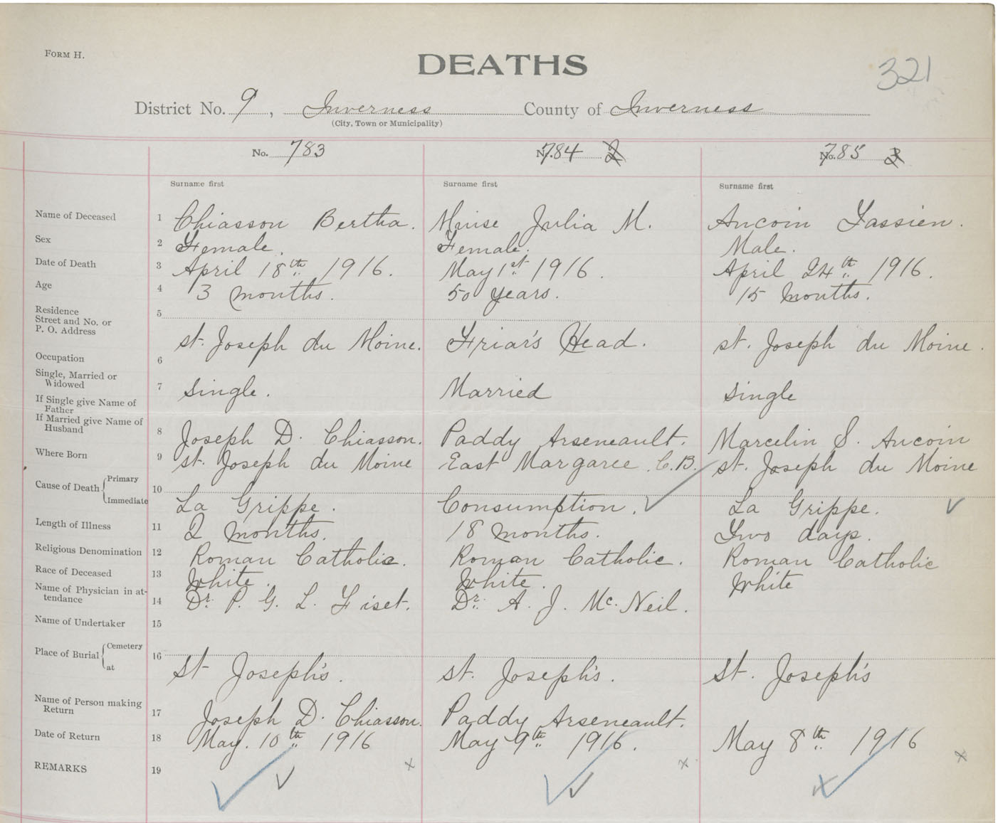 Death Registration: Year: 1916 book: 37 page: 321 number: 785