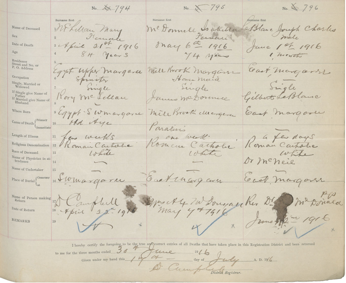 Death Registration: Year: 1916 book: 37 page: 323 number: 796