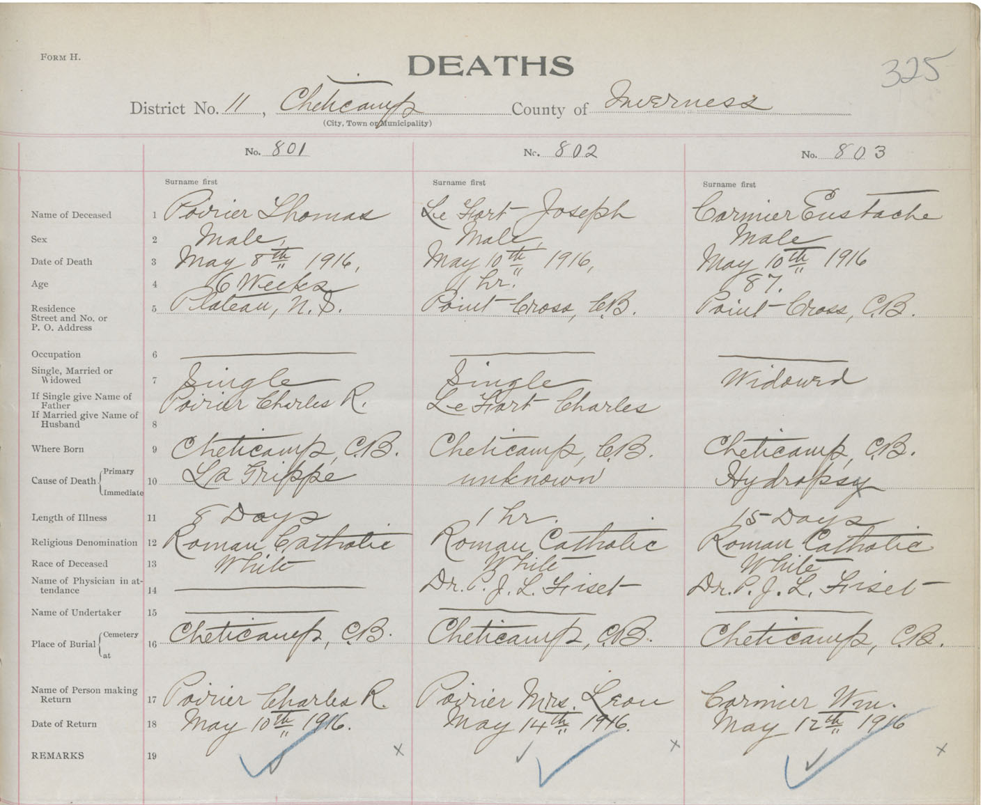 Death Registration: Year: 1916 book: 37 page: 325 number: 803