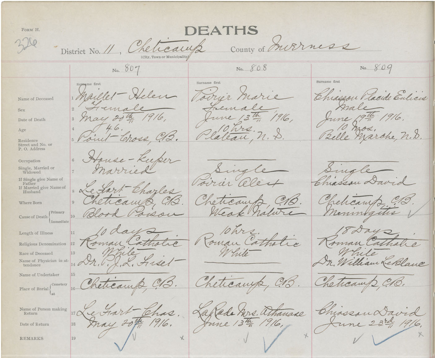 Death Registration: Year: 1916 book: 37 page: 326 number: 809
