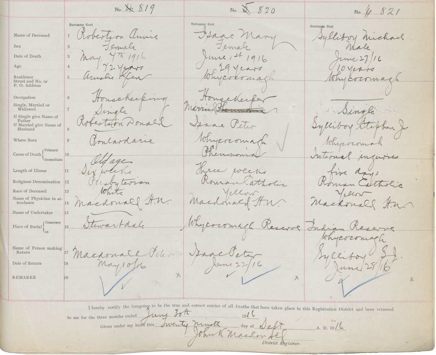 Death Registration: Year: 1916 book: 37 page: 329 number: 821