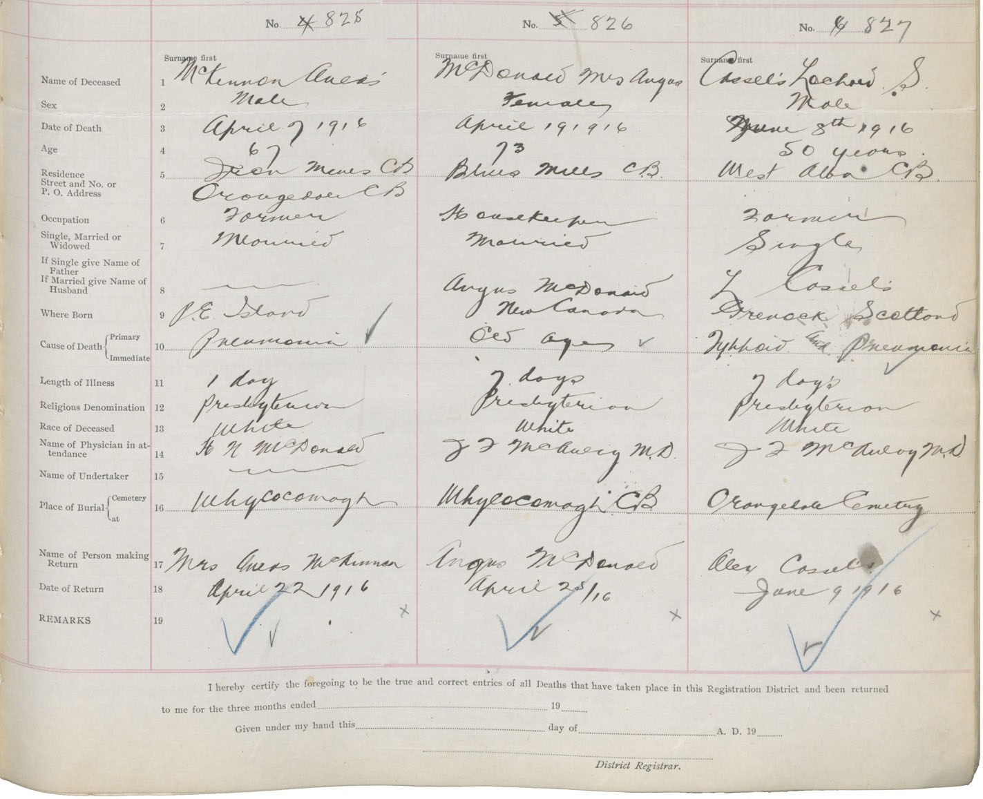 Death Registration: Year: 1916 book: 37 page: 331 number: 827