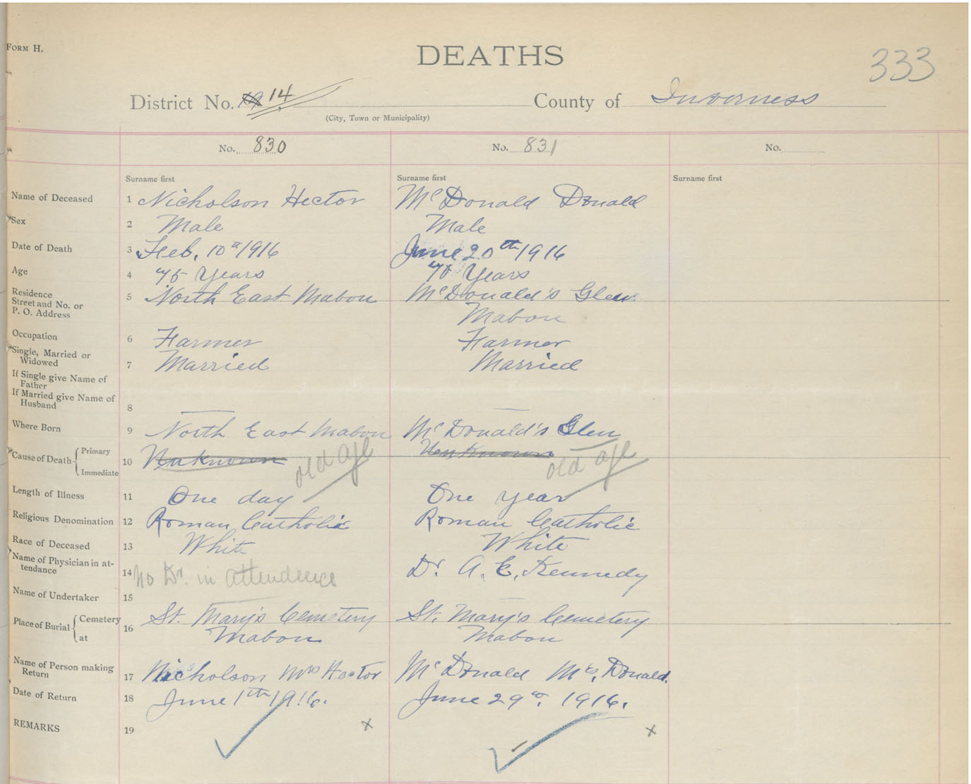 Death Registration: Year: 1916 book: 37 page: 333 number: 831