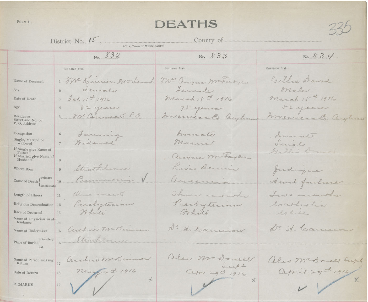 Death Registration: Year: 1916 book: 37 page: 335 number: 834