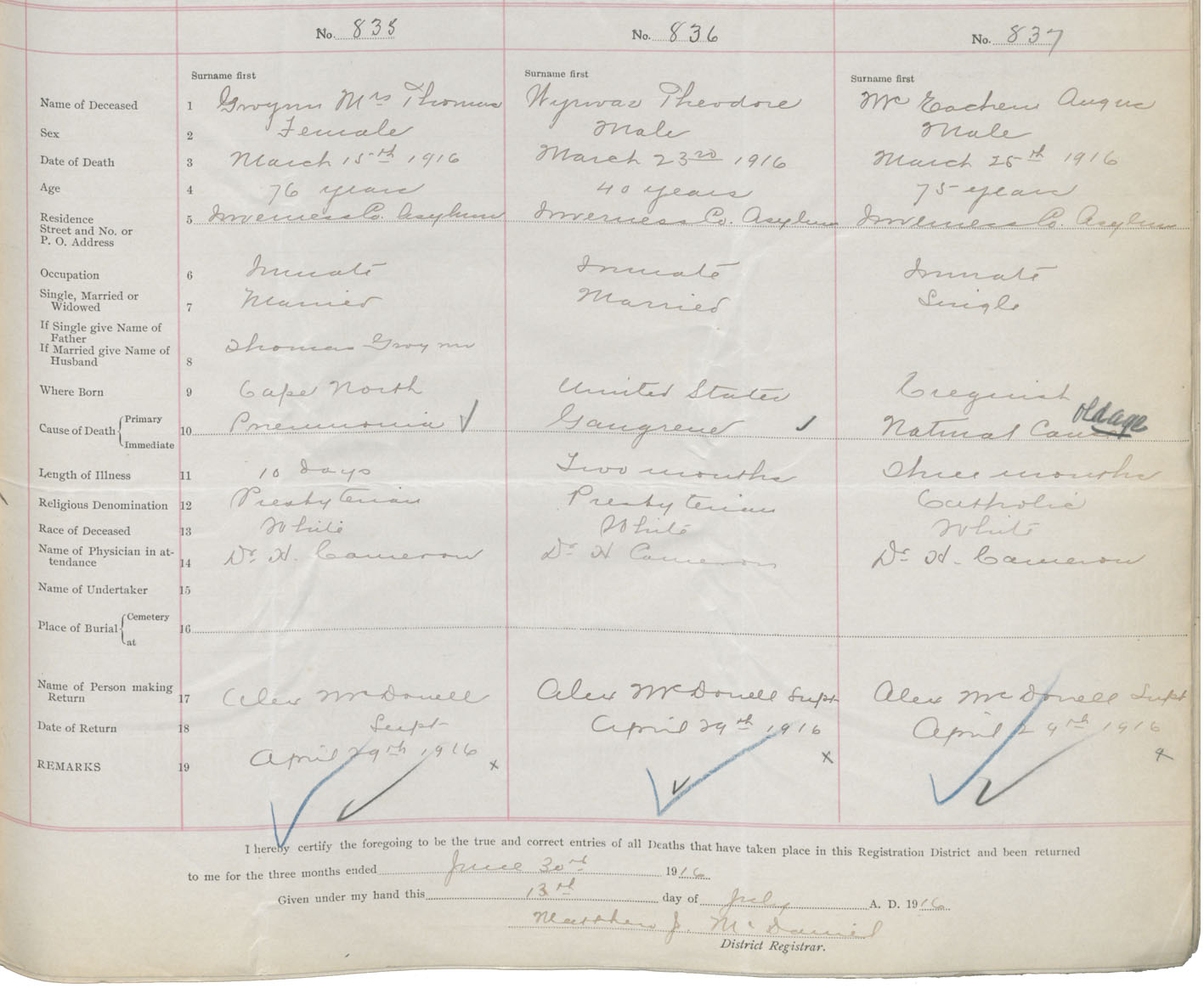 Death Registration: Year: 1916 book: 37 page: 335 number: 837