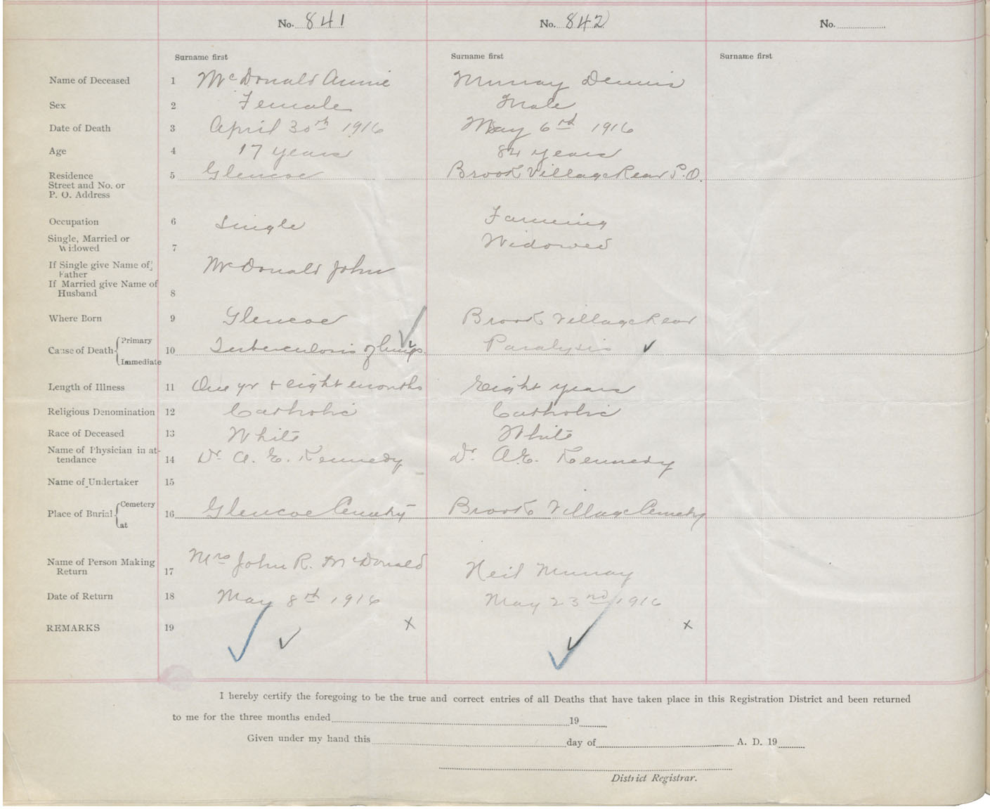 Death Registration: Year: 1916 book: 37 page: 336 number: 842