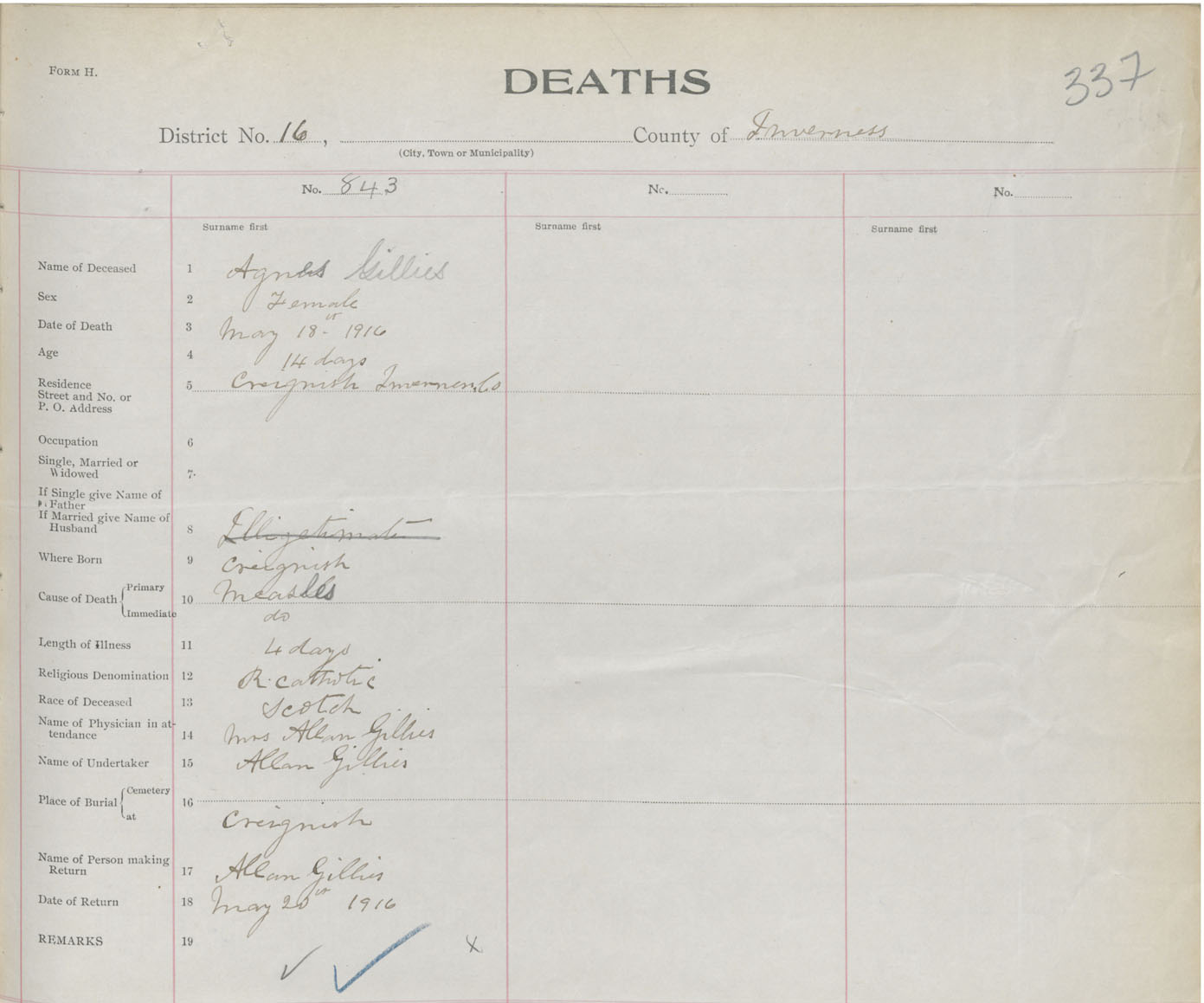 Death Registration: Year: 1916 book: 37 page: 337 number: 843