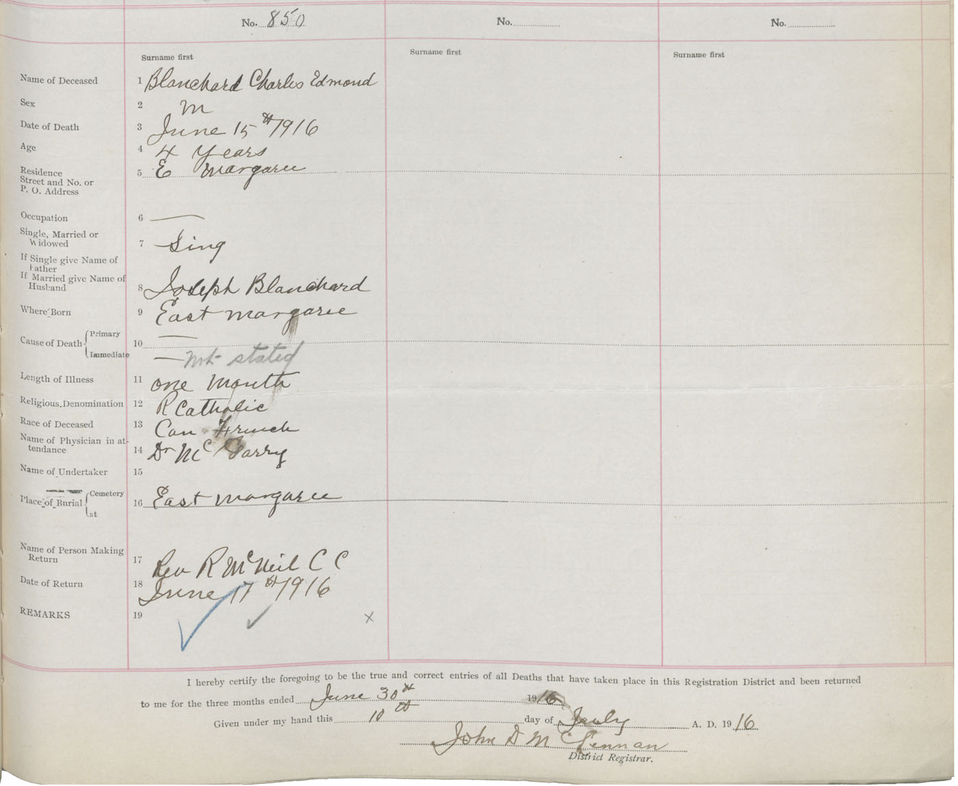 Death Registration: Year: 1916 book: 37 page: 341 number: 850