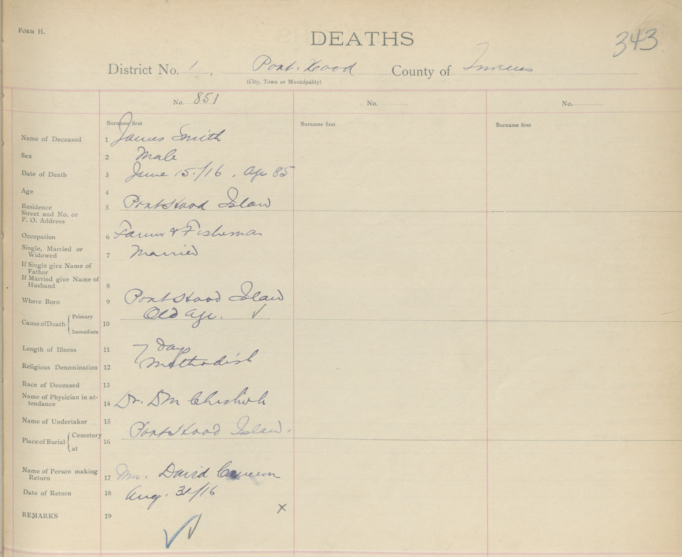 Death Registration: Year: 1916 book: 37 page: 343 number: 851