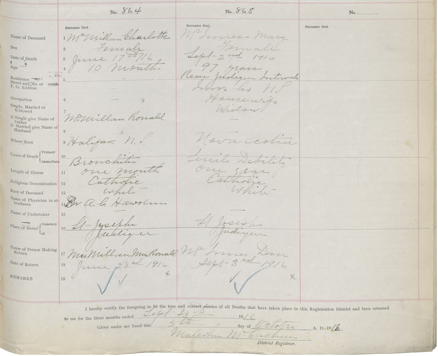 Death Registration: Year: 1916 book: 37 page: 351 number: 865