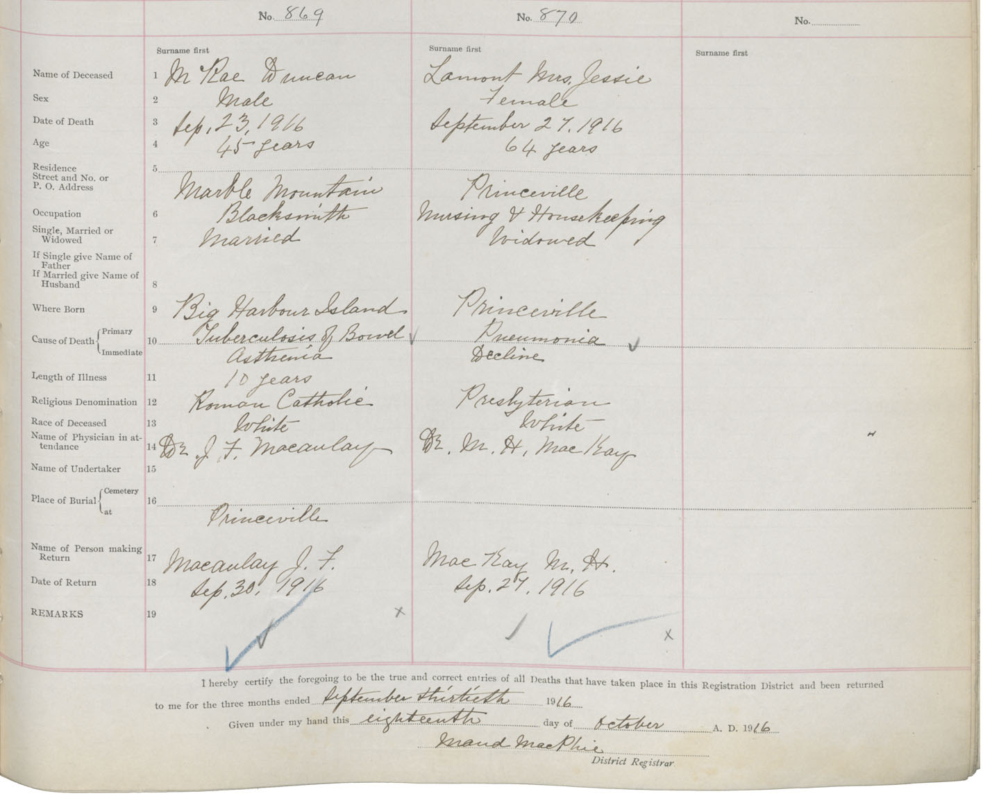 Death Registration: Year: 1916 book: 37 page: 353 number: 870
