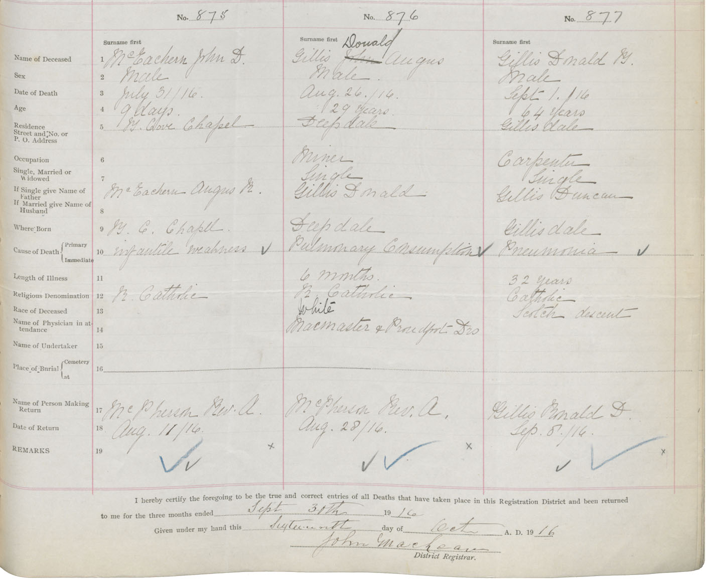 Death Registration: Year: 1916 book: 37 page: 357 number: 877