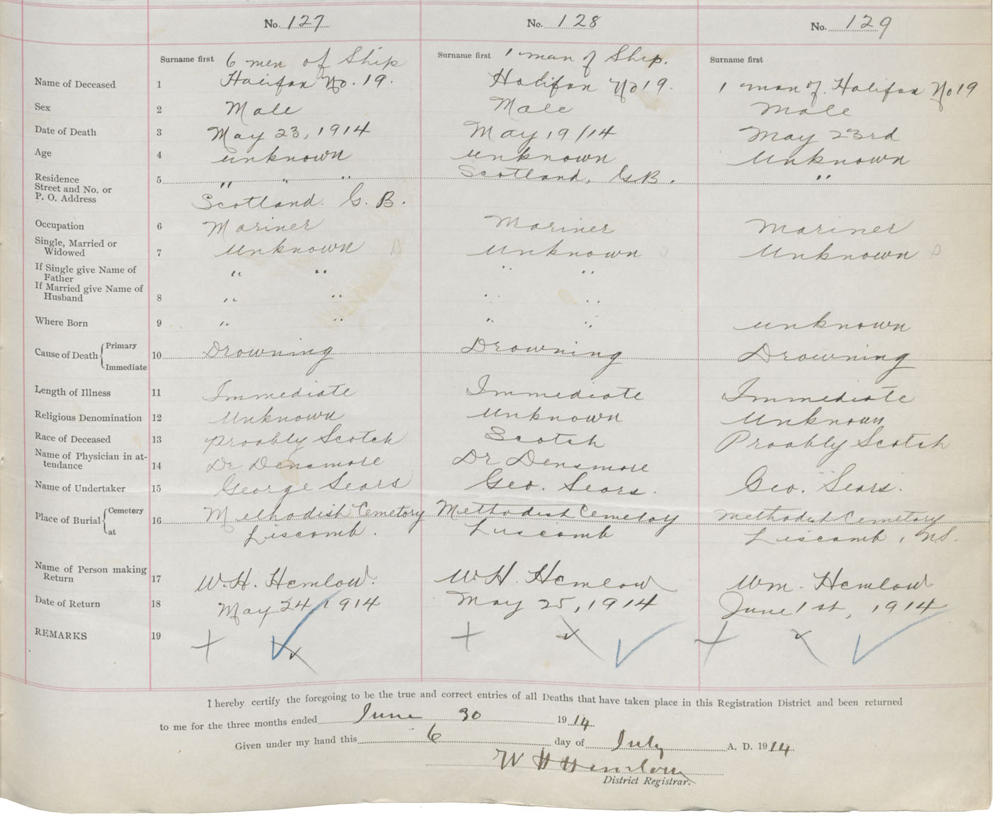 Male Death Registration: Year: 1914 book: 38 page: 57 number: 129