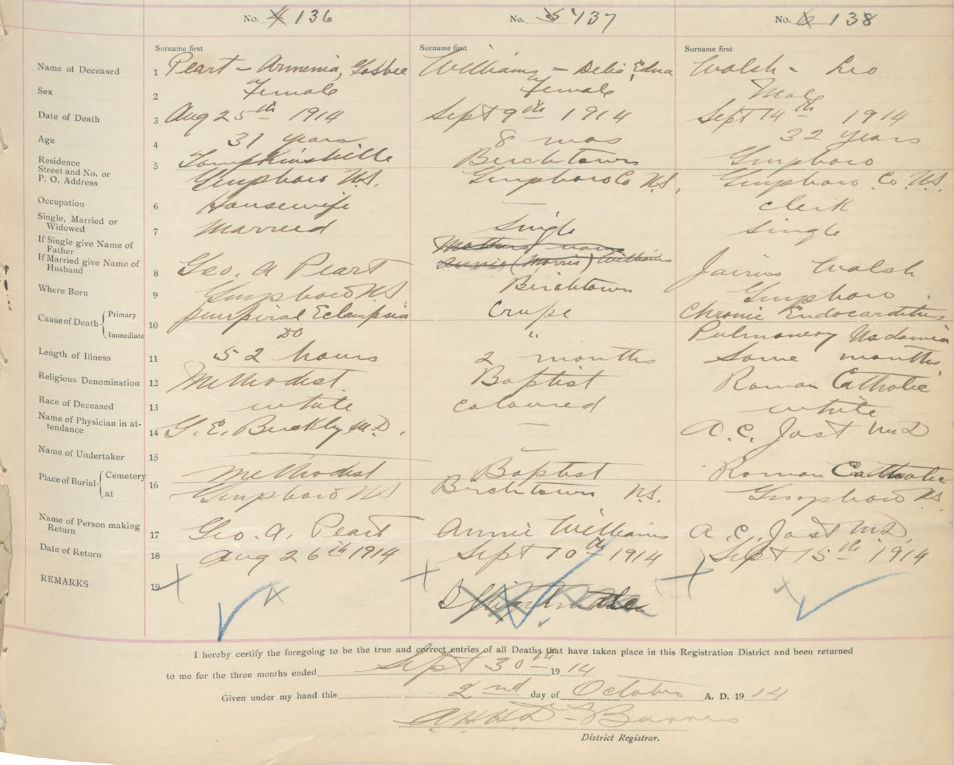 Male Death Registration: Year: 1914 book: 38 page: 63 number: 138