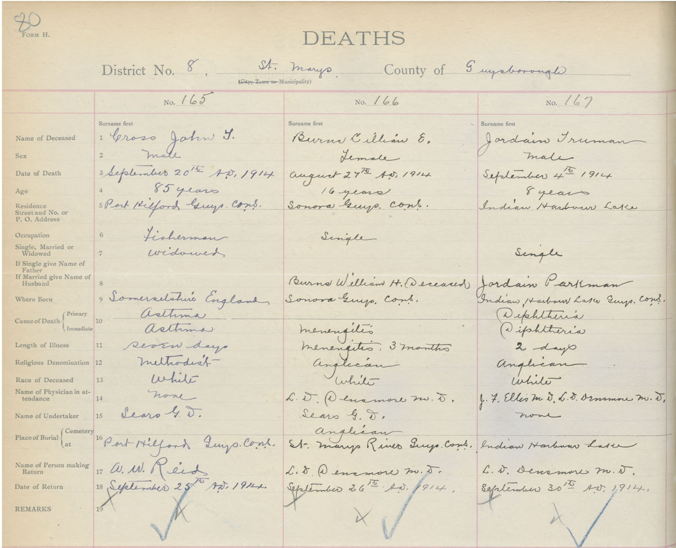 Male Death Registration: Year: 1914 book: 38 page: 80 number: 167