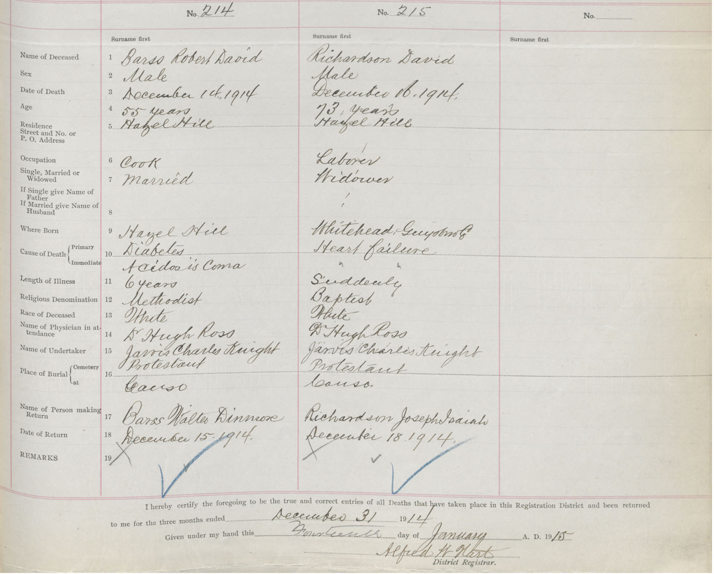 Male Death Registration: Year: 1914 book: 38 page: 103 number: 215