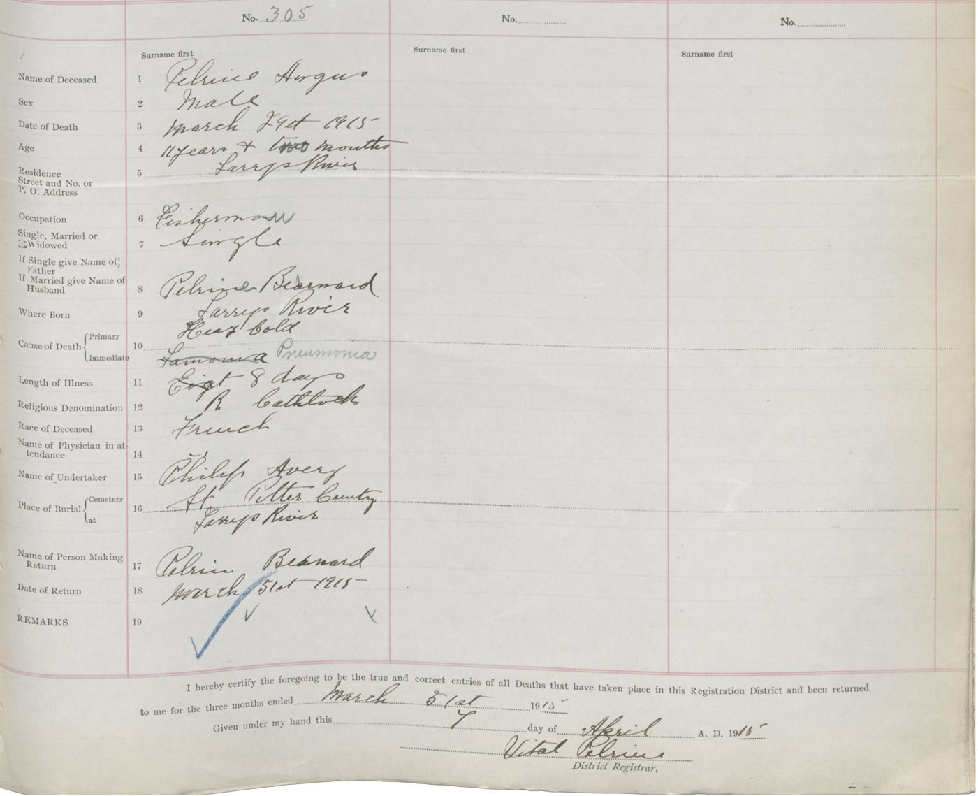Male Death Registration: Year: 1915 book: 38 page: 149 number: 305