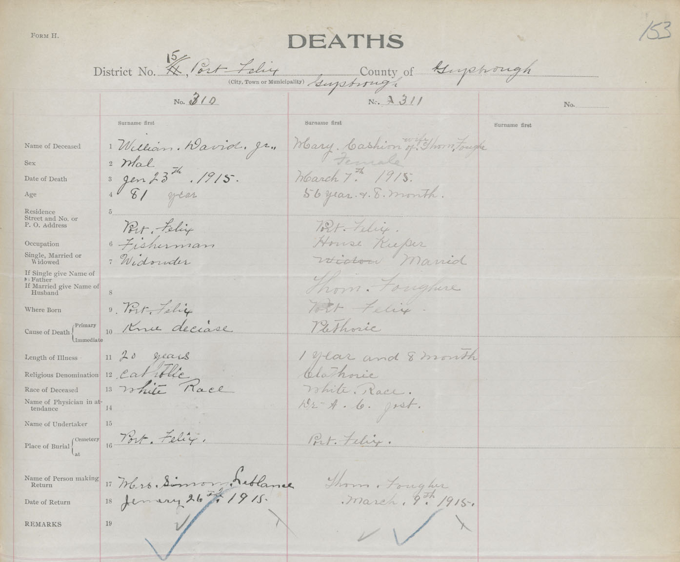 Female Death Registration: Year: 1915 book: 38 page: 153 number: 311