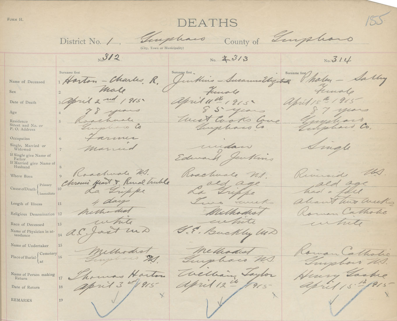 Female Death Registration: Year: 1915 book: 38 page: 155 number: 314
