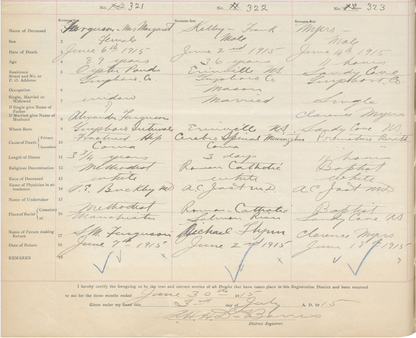 Male Death Registration: Year: 1915 book: 38 page: 156 number: 323