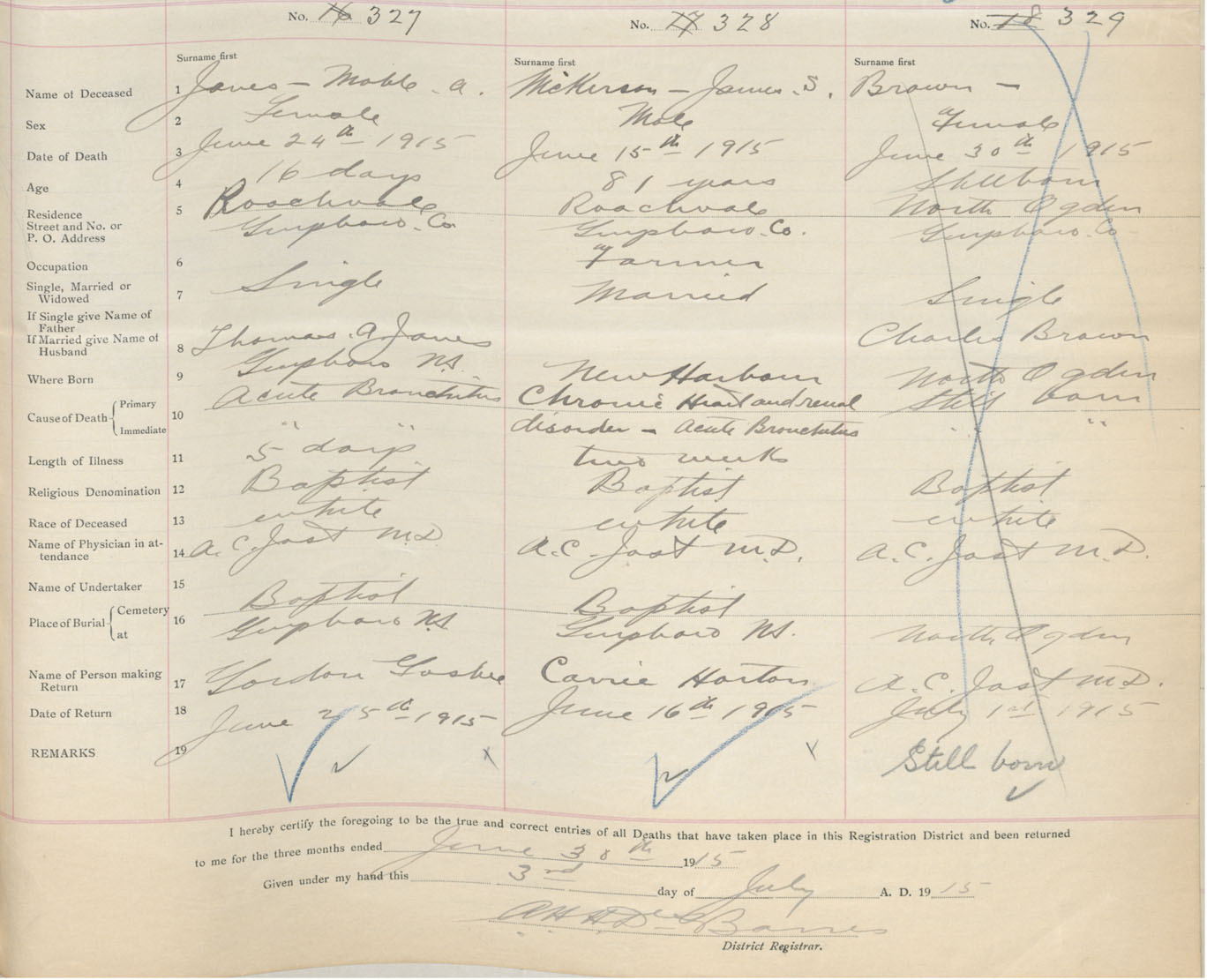 Male Death Registration: Year: 1915 book: 38 page: 157 number: 328