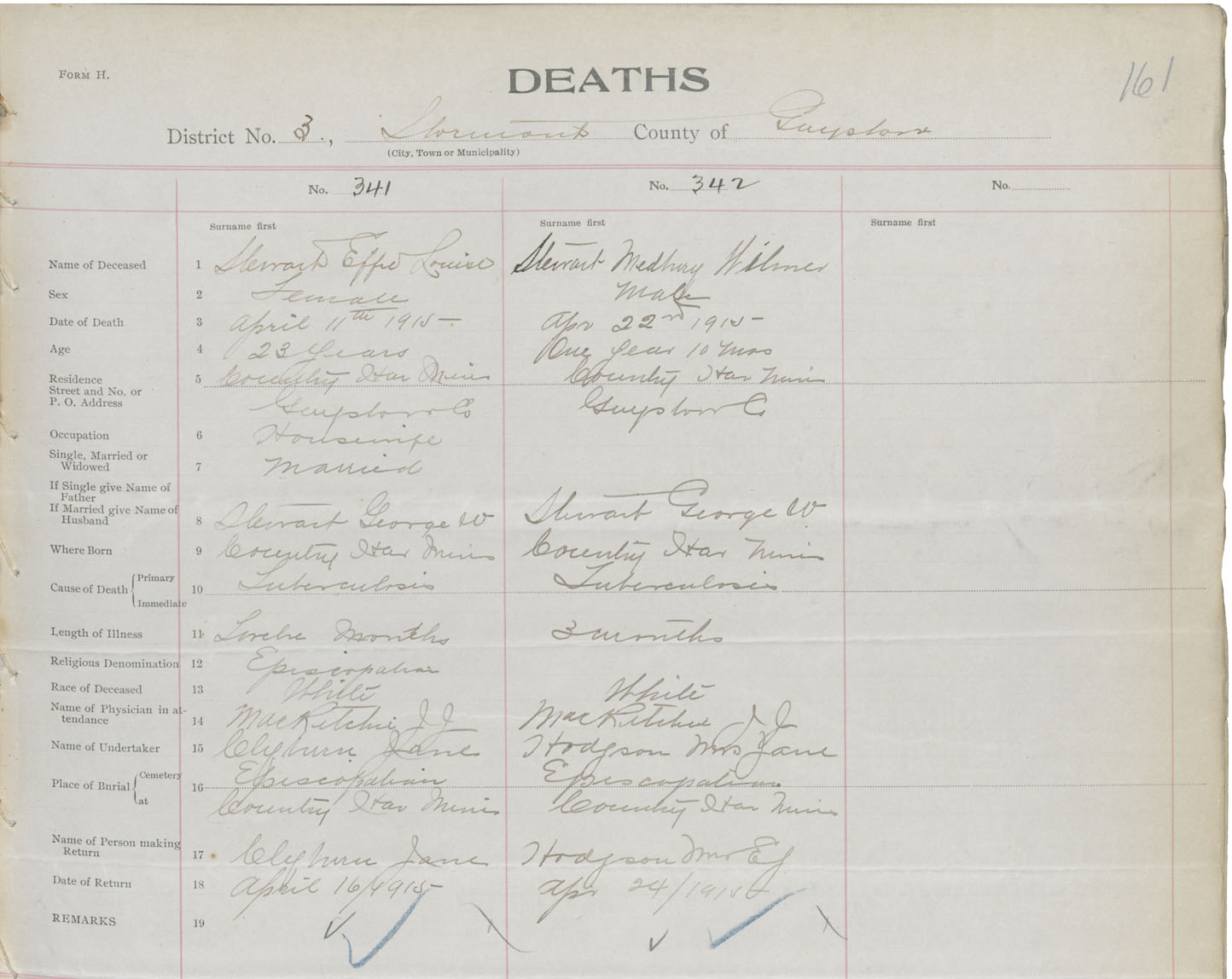 Male Death Registration: Year: 1915 book: 38 page: 161 number: 342