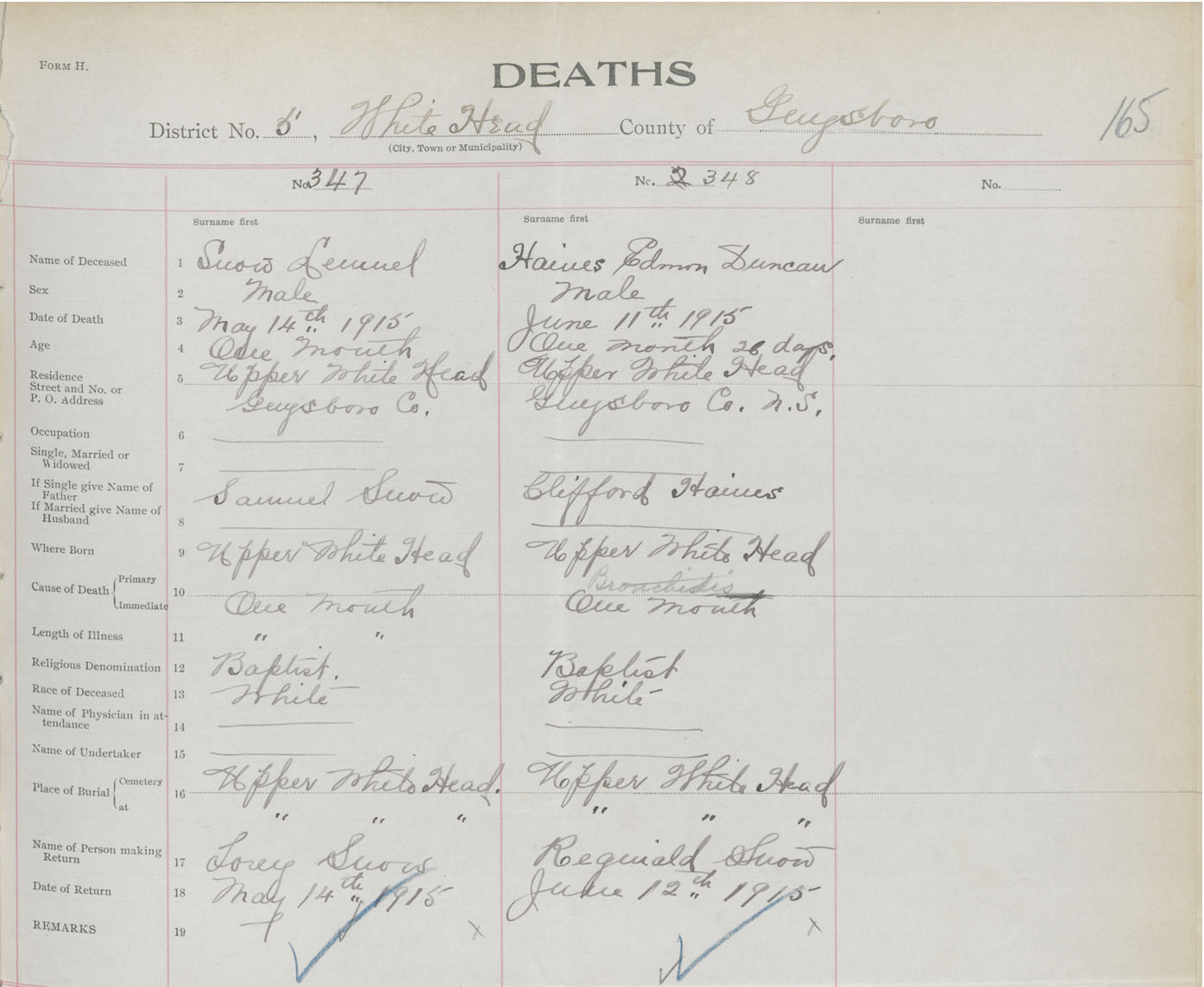 Male Death Registration: Year: 1915 book: 38 page: 165 number: 348