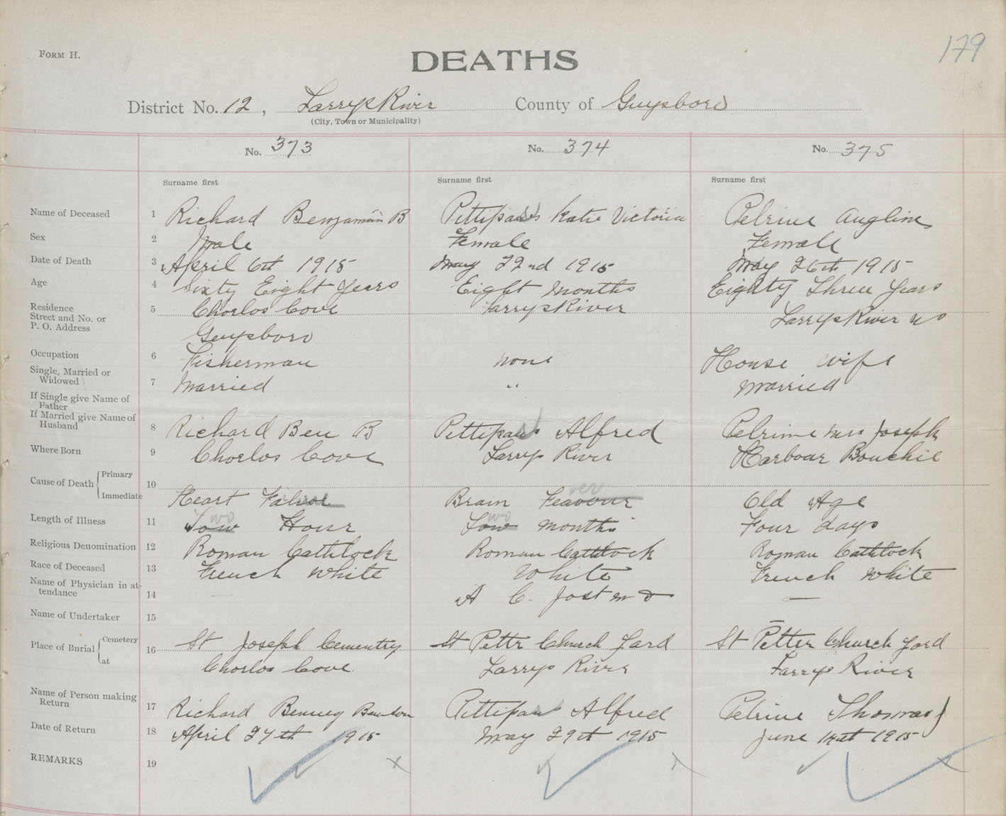 Female Death Registration: Year: 1915 book: 38 page: 179 number: 375