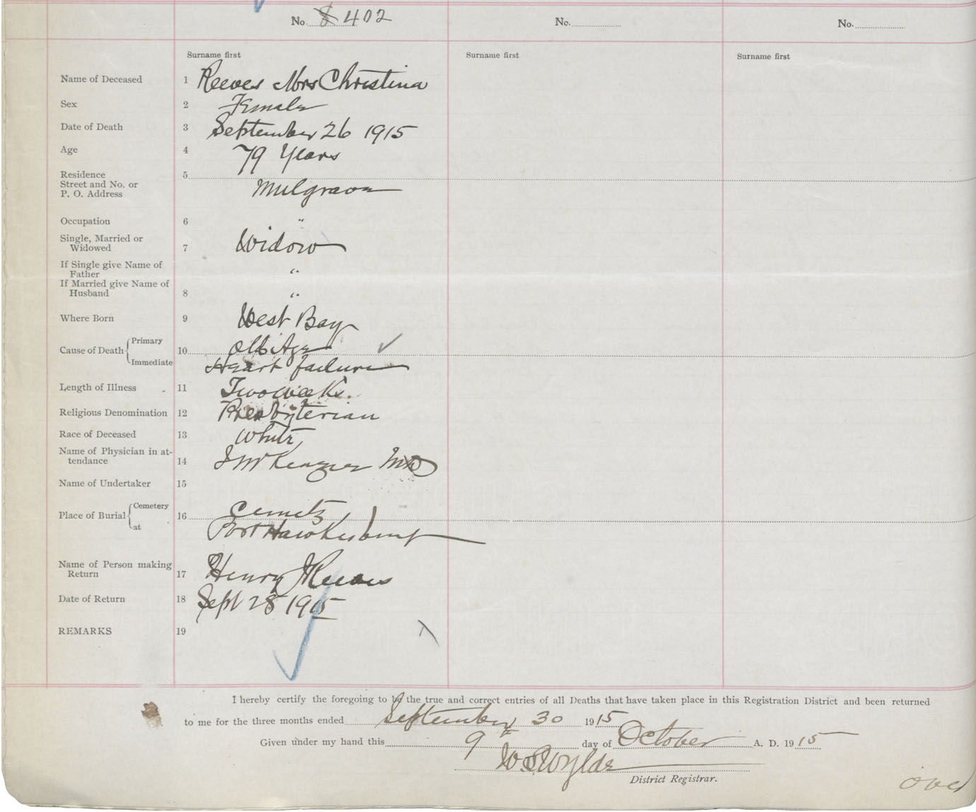 Female Death Registration: Year: 1915 book: 38 page: 192 number: 402