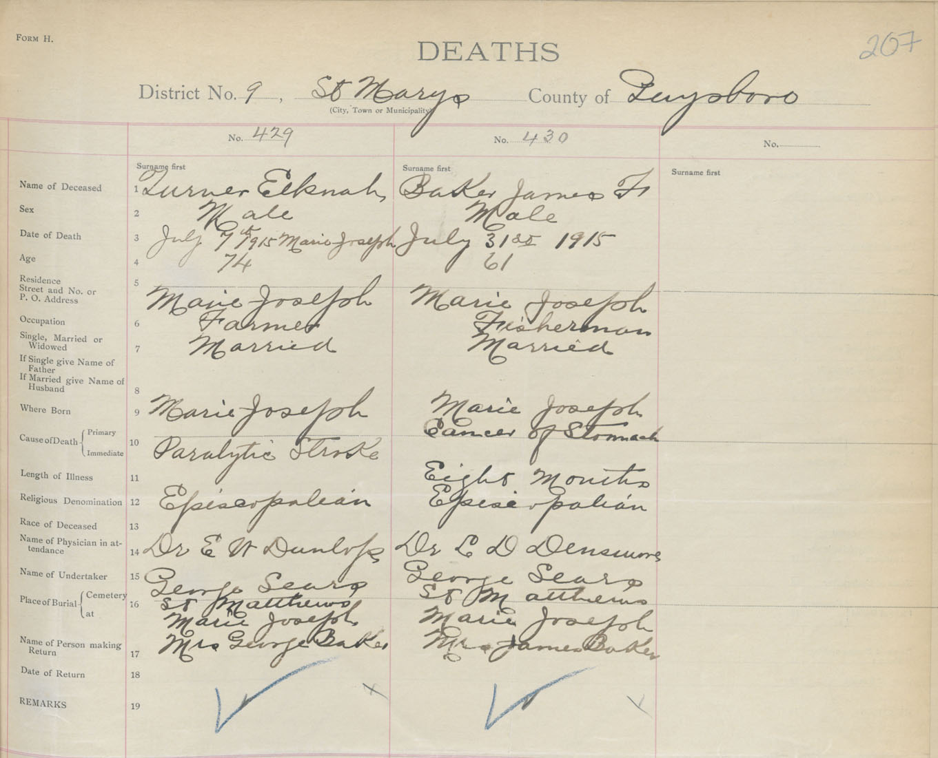 Male Death Registration: Year: 1915 book: 38 page: 207 number: 430