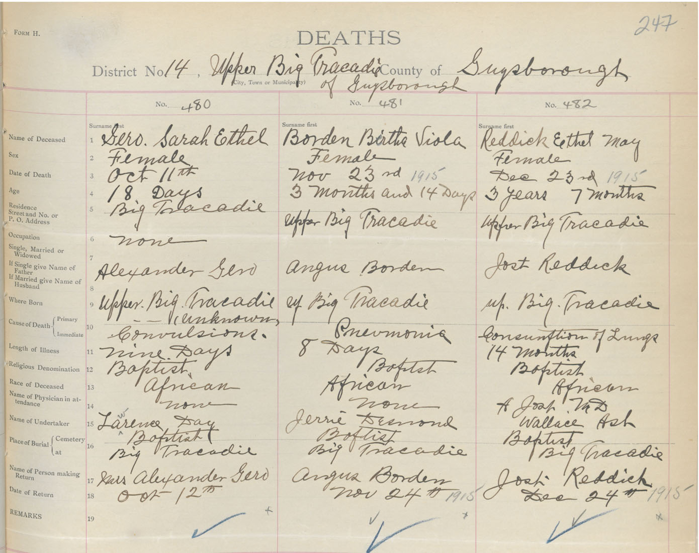 Female Death Registration: Year: 1915 book: 38 page: 247 number: 482