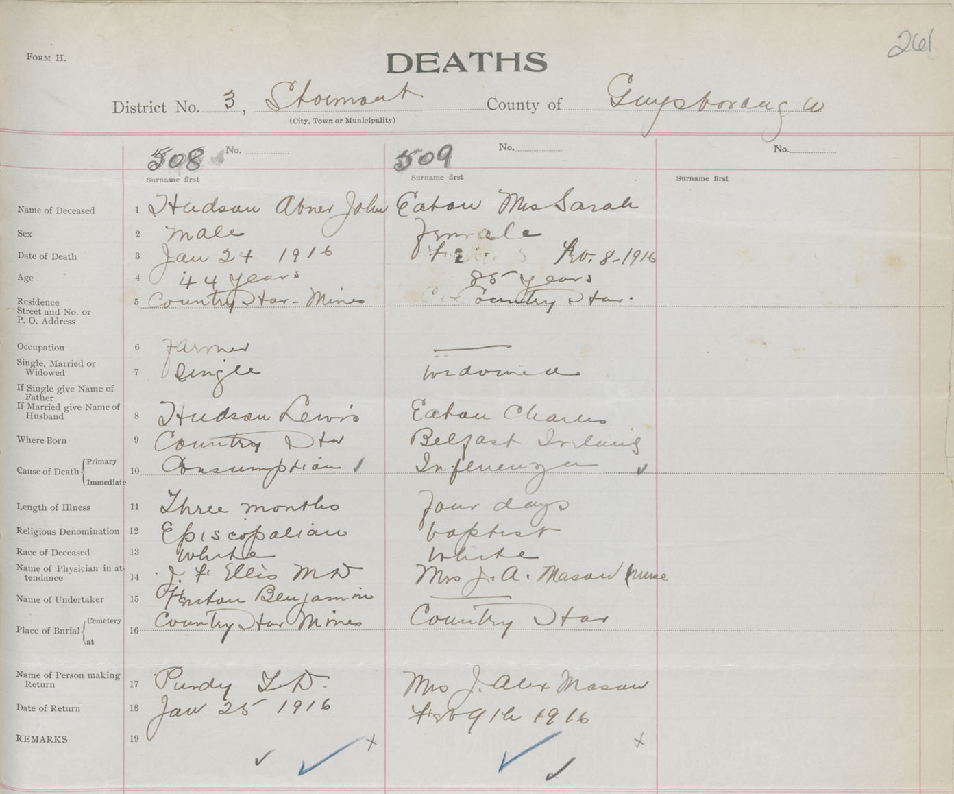 Female Death Registration: Year: 1916 book: 38 page: 261 number: 509