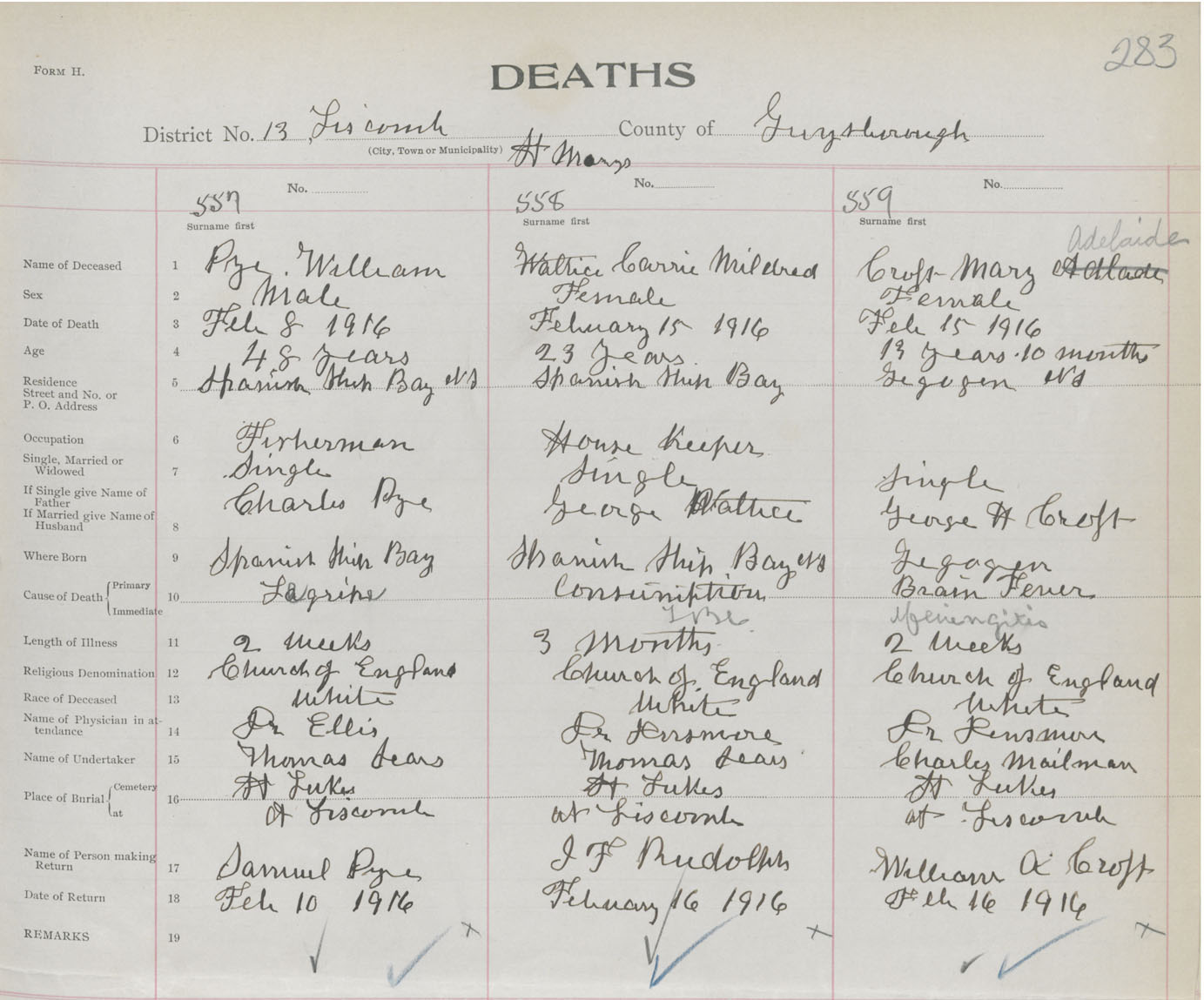 Female Death Registration: Year: 1916 book: 38 page: 283 number: 559