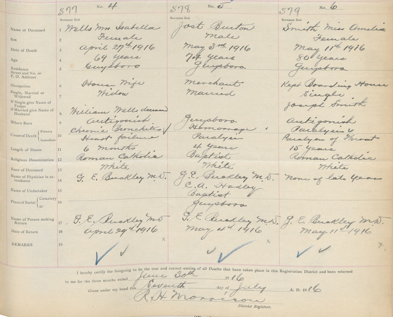 Female Death Registration: Year: 1916 book: 38 page: 295 number: 579