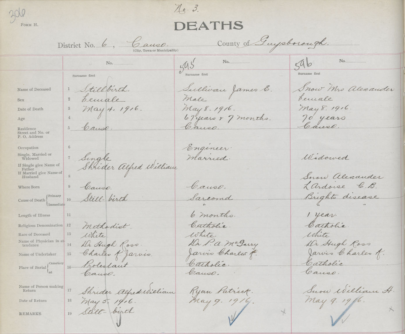 Female Death Registration: Year: 1916 book: 38 page: 306 number: 596