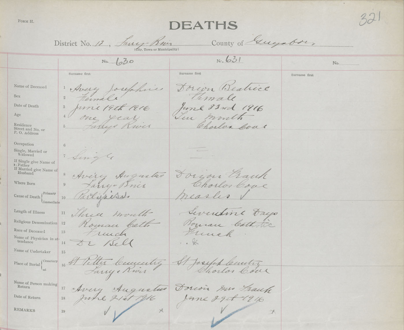 Female Death Registration: Year: 1916 book: 38 page: 321 number: 631