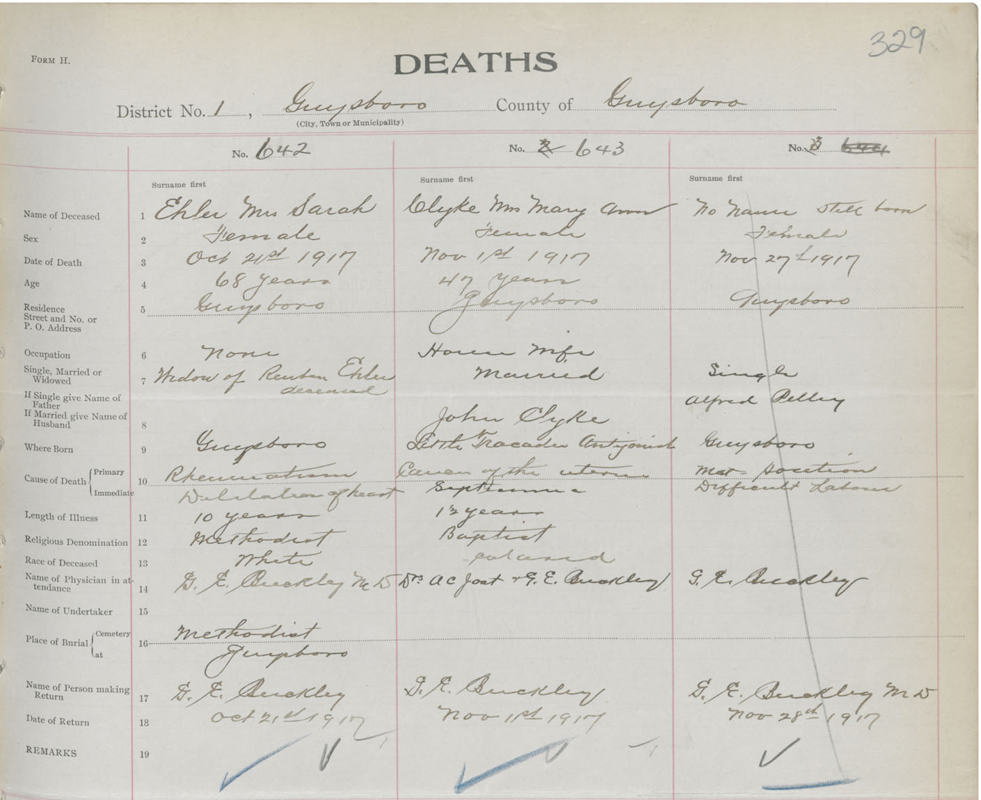 Female Death Registration: Year: 1917 book: 38 page: 329 number: 643